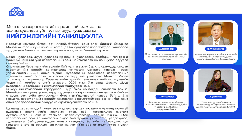 Монголын хэрэглэгчдийн эрх ашгийг хамгаалах цахим худалдаа, үйлчилгээ, шууд худалдааны нийгэмлэгийн танилцуулга